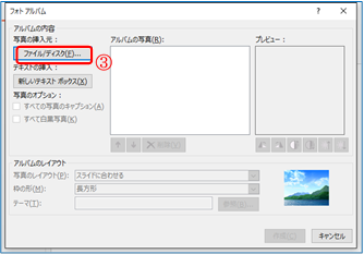 ② 「フォトアルバムダイアログ」が表示される