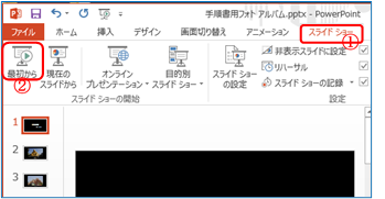 「スライドショー」T⇒「最初から」B