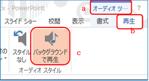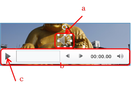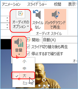 ⑧ 画面上のスピーカーアイコン a をクリックすると「再生/停止」の操作B b が 現れるので「再生」B c で音量など確認する