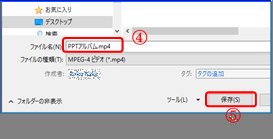 ③ 「ファイルの種類リスト」が現れるので「MPEG-4ビデオ(*.mp4)」