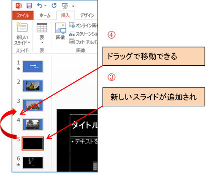 ③ 新しいスライドが挿入される