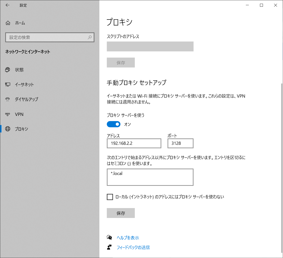 アドレス:192.168.2.2 ←プロキシサーバのIP