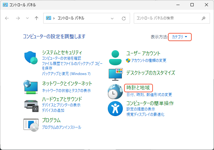 1-2.コントロールパネルから操作(表示方法:カテゴリ)