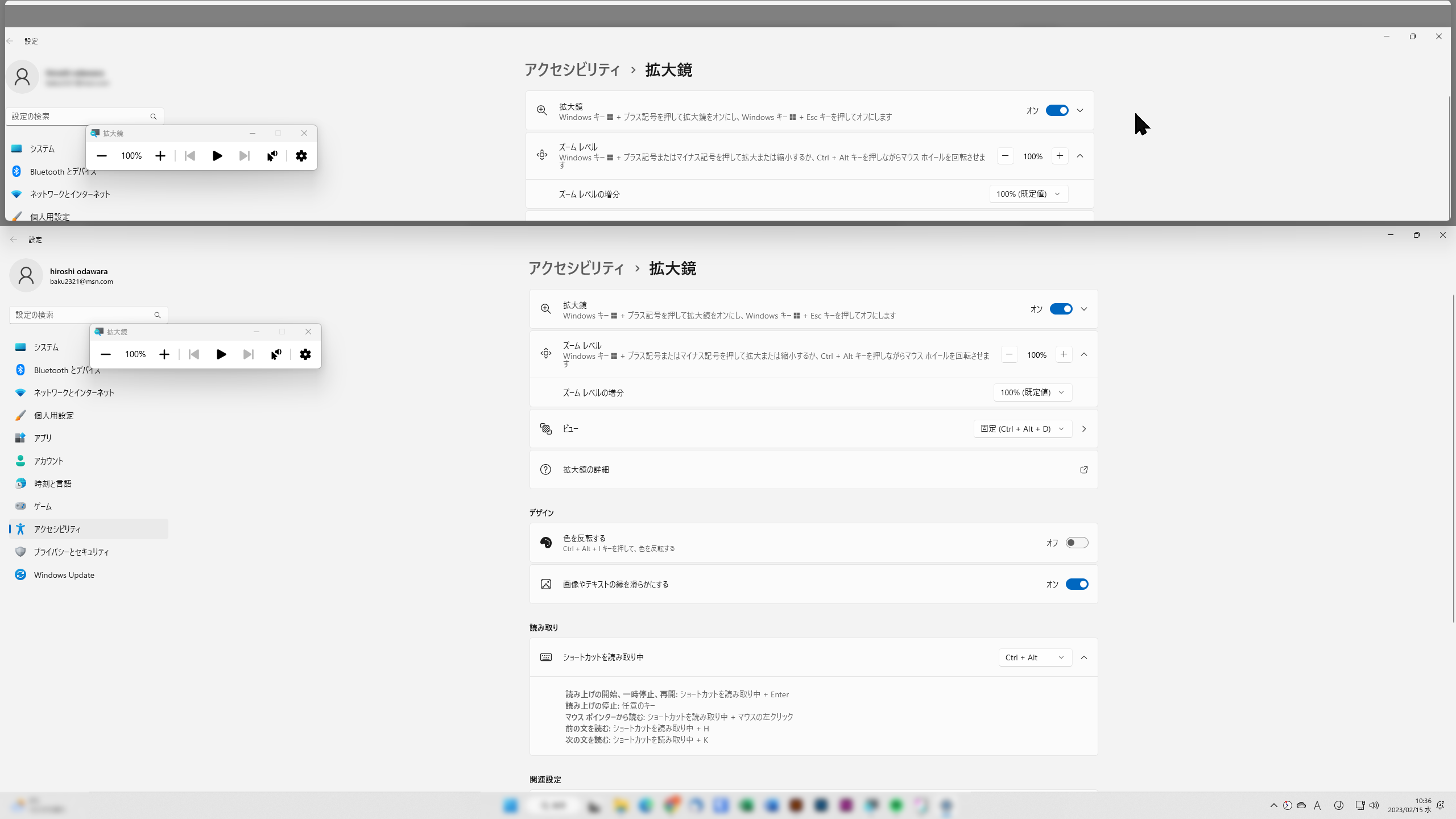 Windows 11 でマウスカーソルを含めてスクリーンショットを撮るには拡大鏡を使用する。