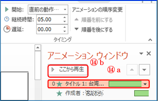 ⑭ アニメーションウィンドウの「タイトル1」をクリック