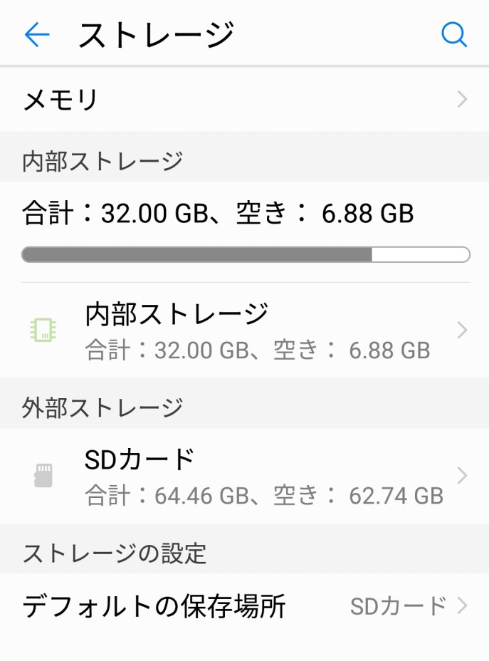 調べているとHuaweiのAndroidスマホではSDカードを内部ストレージとして利用する機能があるとのこと。