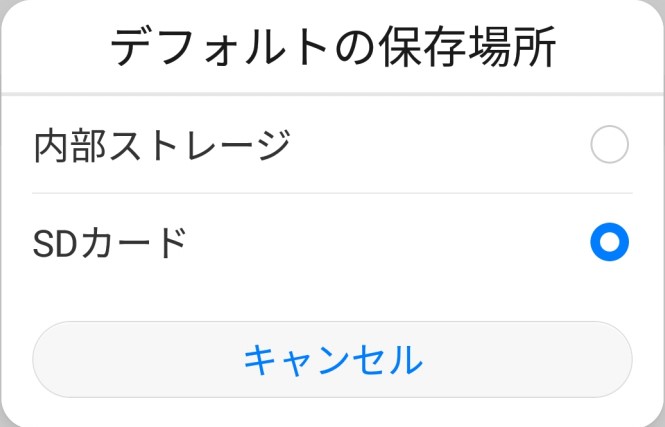 設定→ストレージ→デフォルトの保存場所を「内部ストレージ」から「SDカード」に変更
