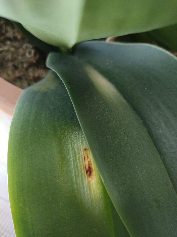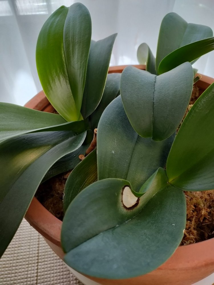 育てている胡蝶蘭の葉が白くなった。