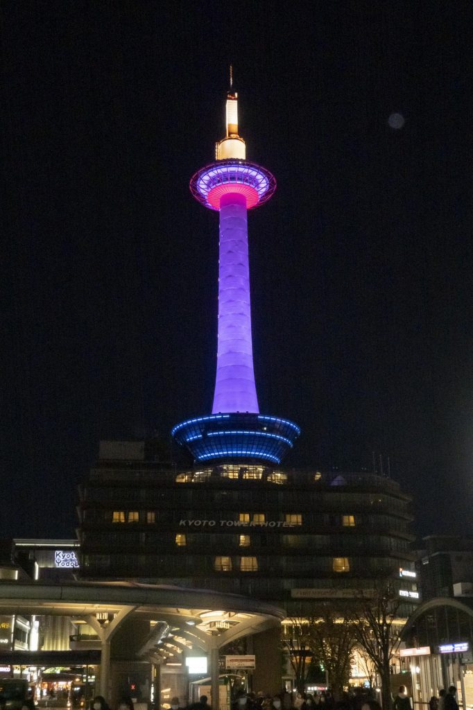 いつもは白のライトアップ、11月13日は「パープルリボン運動」の一環として ピンクでした。