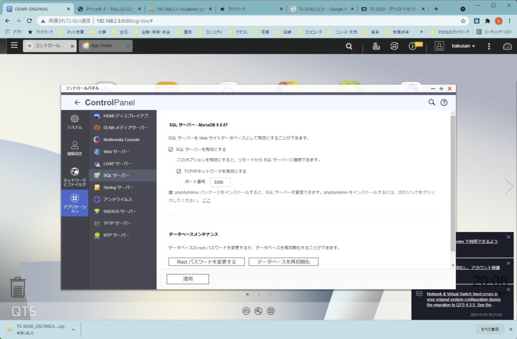 ファームウェアを一つ前のバージョンQTS 4.5.4.1800 build 20210923 にしてみた。