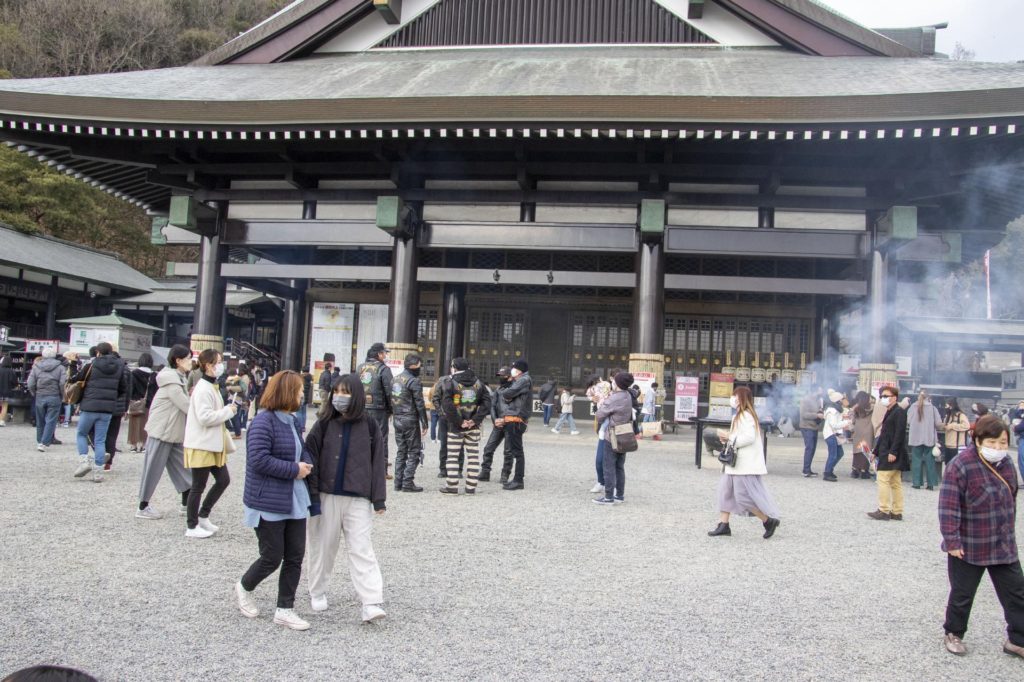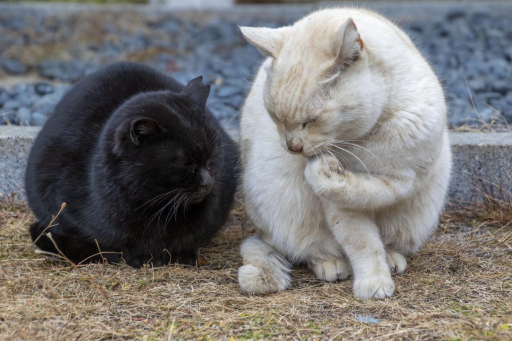 1月25日撮影:参拝する人は少なかったが野良猫はいつも通りあちらこちらに。