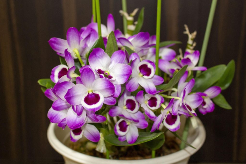 咲き終わって葉が枯れた頃、みかんの網袋に入れて日陰の涼しい場所に吊るして夏~秋を過ごす。11月頃に再び鉢植えしておいたもの。
