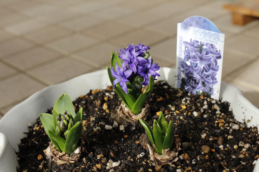 昨年、ホームセンターで買ってきた球根3個のヒヤシンスの鉢。