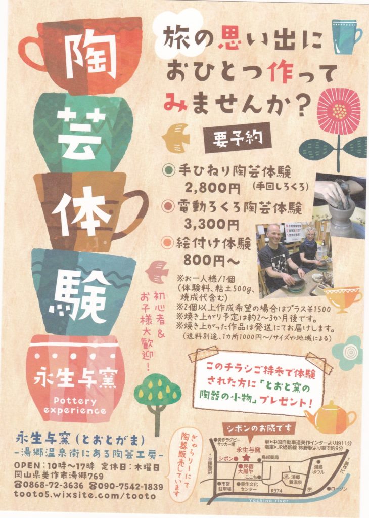 今年、5月に湯の郷温泉に行ったときに「手ひねり陶芸体験」をした。