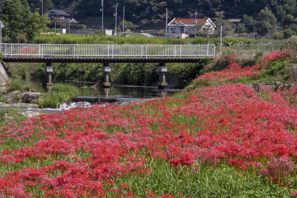 投稿日: 2022年9月26日2022年9月26日矢掛・美山川彼岸花 矢掛町立美川小学校近くの美山川の両岸に群生している。美川コミュニティハウスの駐車場に車を止めて北側(川上)へ徒歩2~300m花の見ごろは終わりに近いがもうしばらく大丈夫かも。