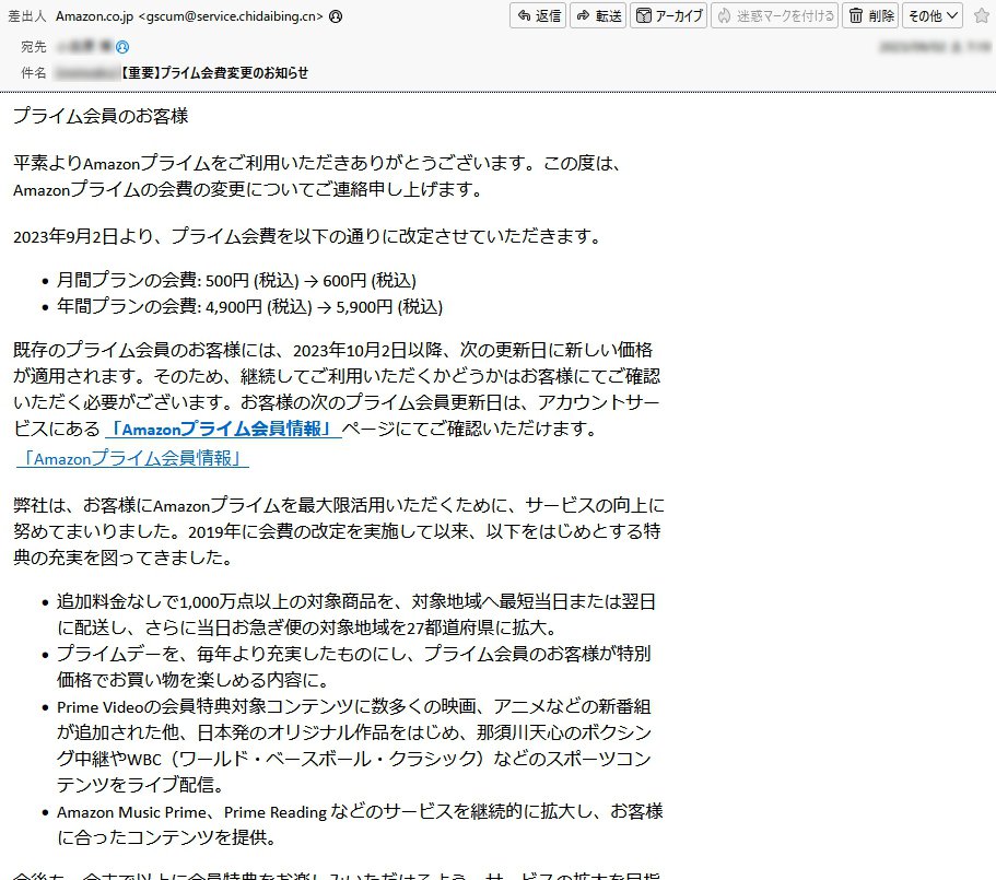 サイトには別のアドレスで登録してあるので気付いたが、会員情報や確認などのリンクをクリックしてパスワードなどを入力しないように気を付けよう。