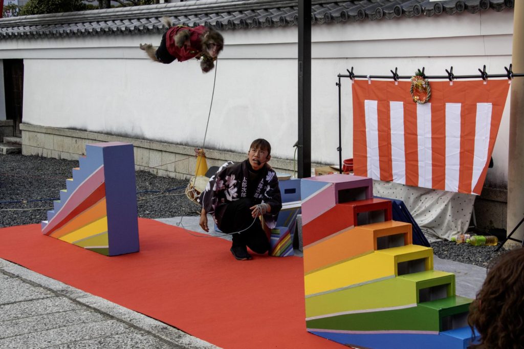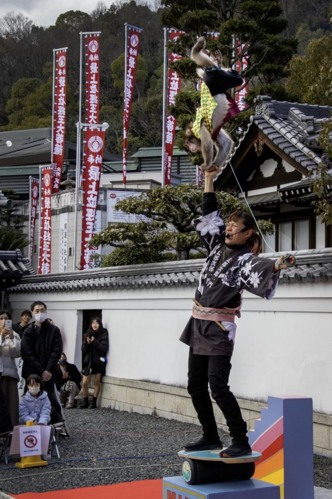 初詣に行ったら妙教寺で猿回しショーをしていた。2024年1月4日撮影