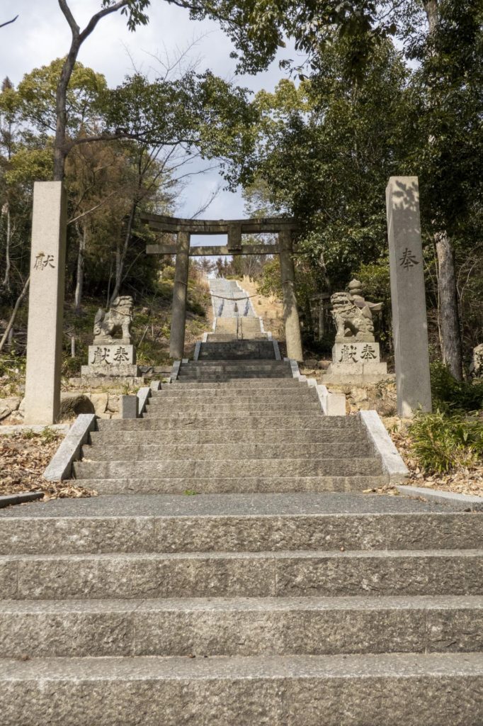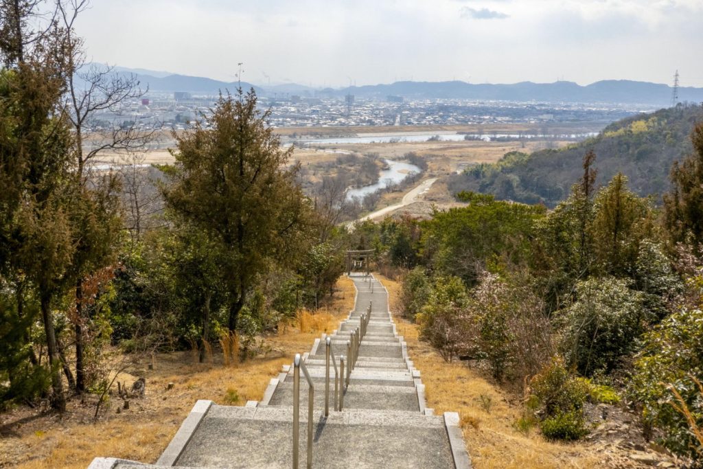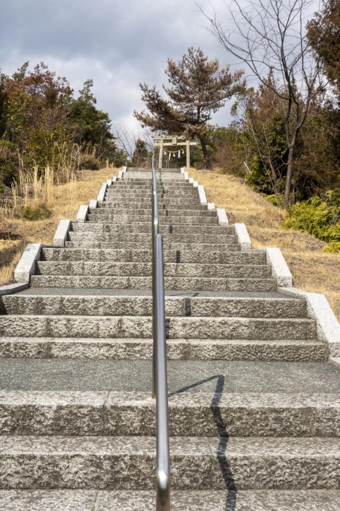 階段は、415段あるらしい。中間地点の鳥居が見える