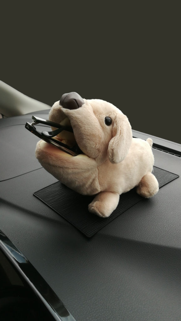 使わないときはマスコット犬、「早くめがねちょーだい!」とでも言っていそう。