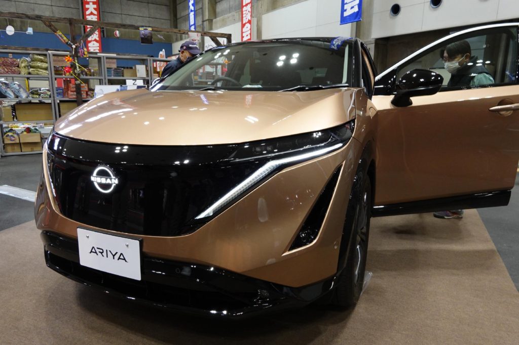 入り口には新型電気自動車 ARIYA が展示されていた。