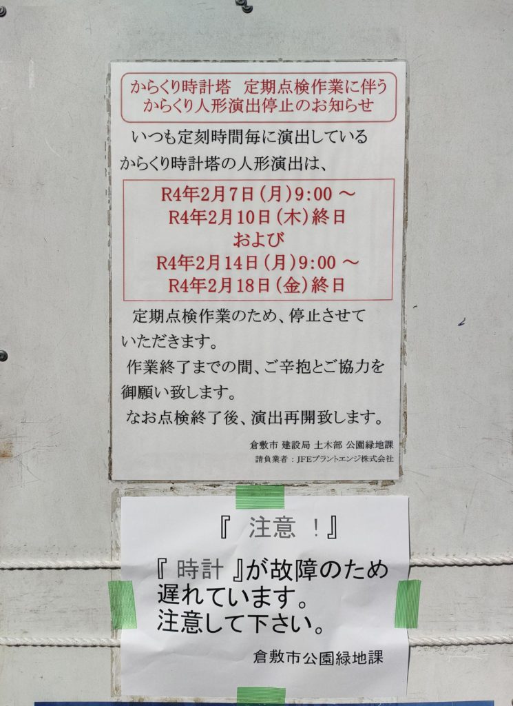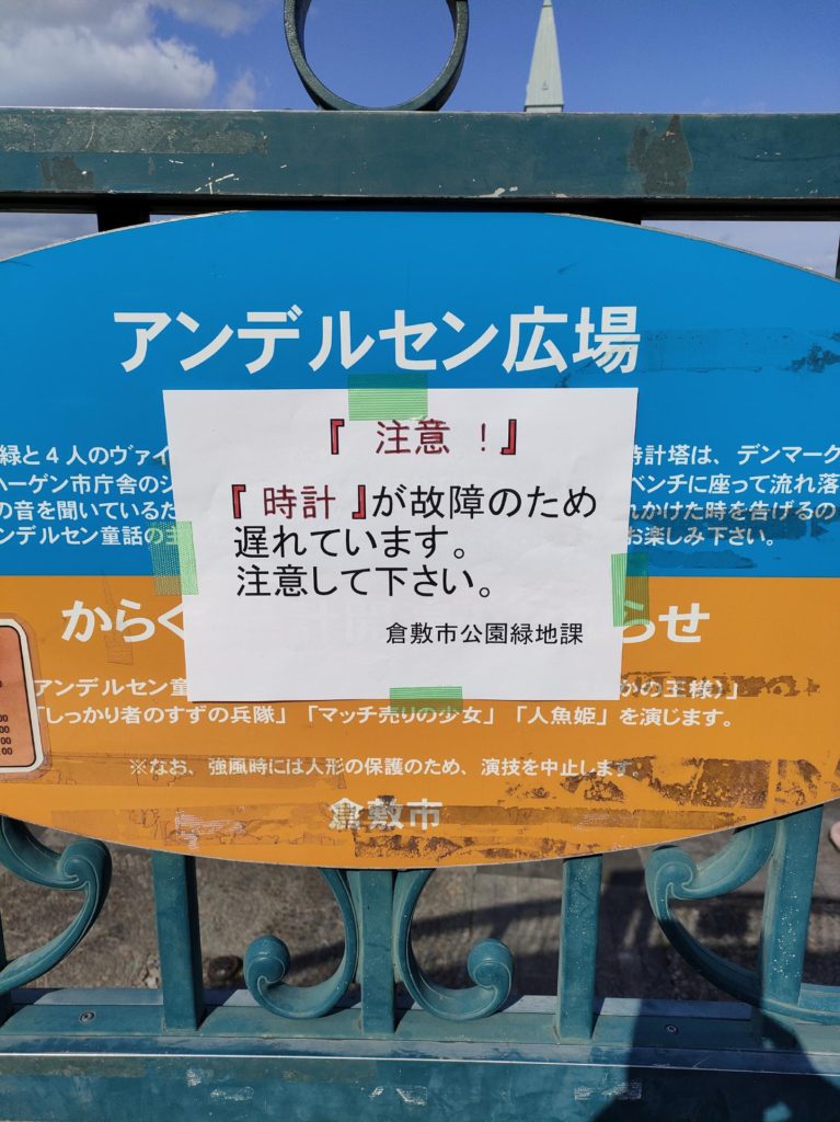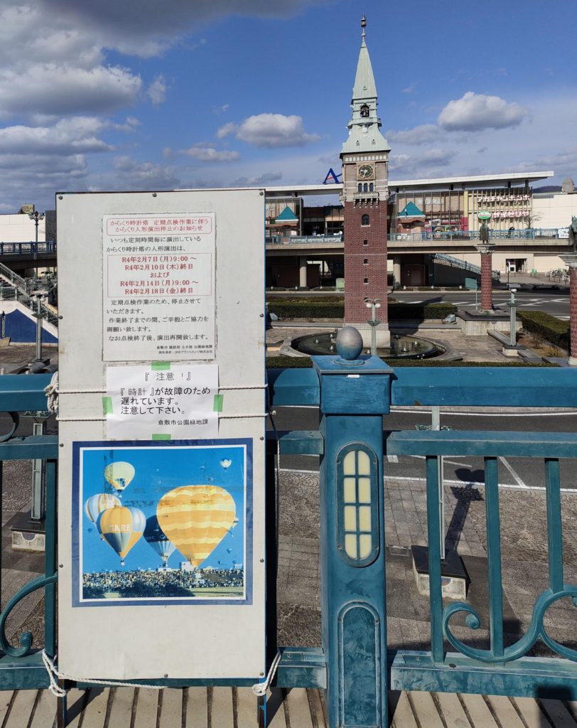 JR倉敷駅北口「からくり時計」の時間が遅れています。