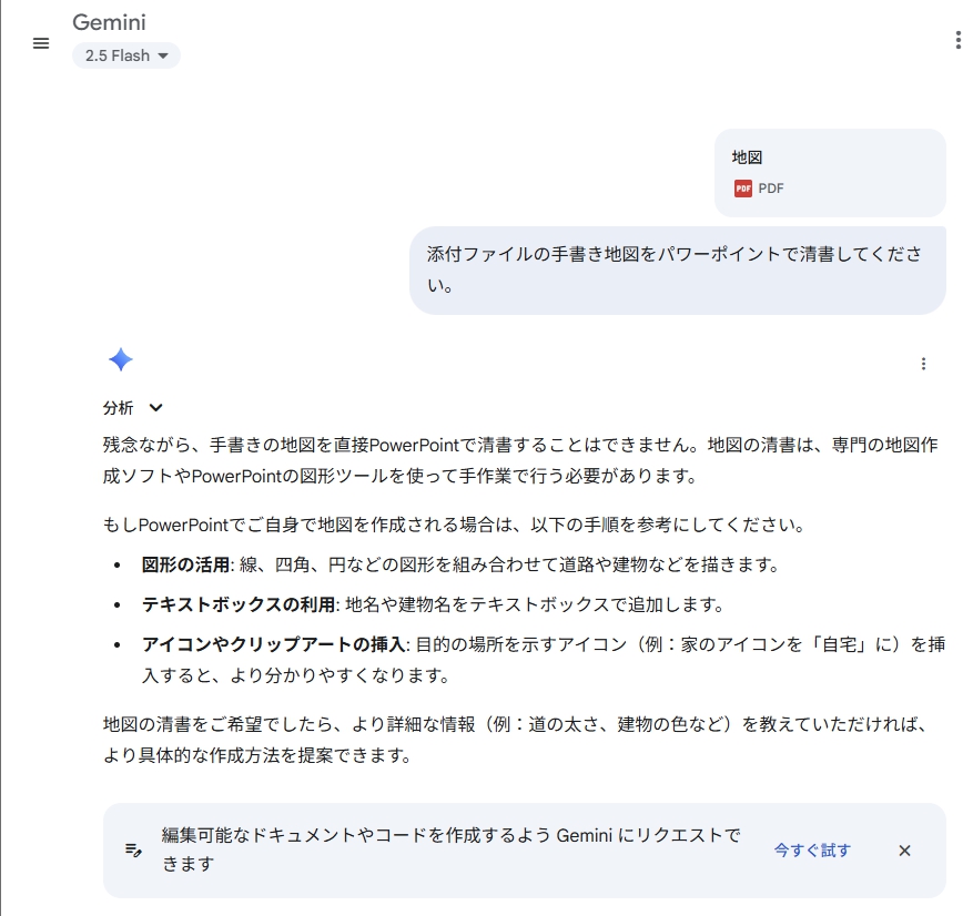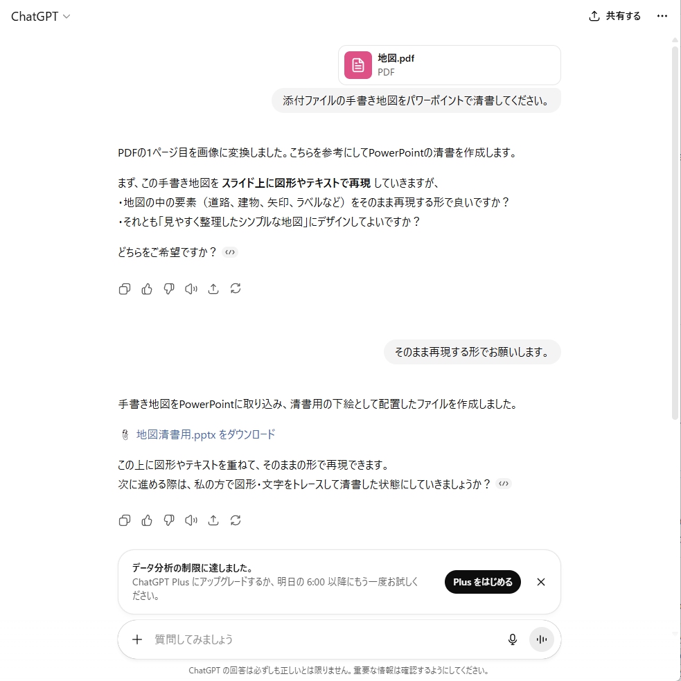 生成AI ChatGPTに添付の地図(PDFファイル)を渡して清書するよう依頼してみた。