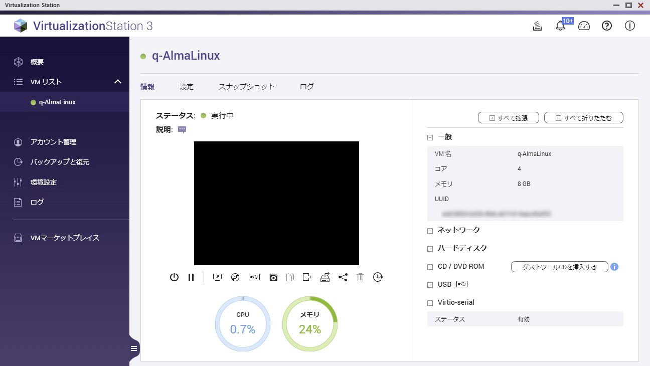 ・CDイメージ:"/homes...../AlmaLinux-9.3-x86_64-dvd.iso"←参照ボタンでセットする