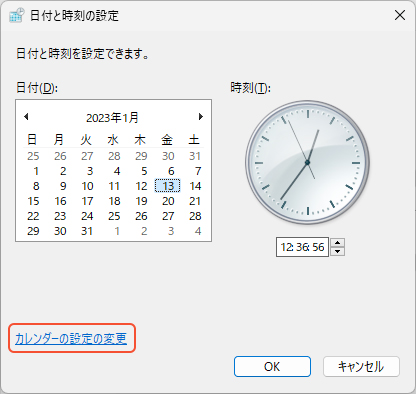 1-2-4.「日付と時刻の設定」ダイアログが表示されるので「カレンダーの変更」をクリック