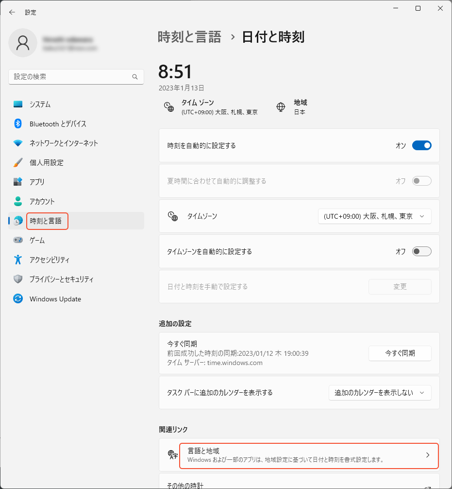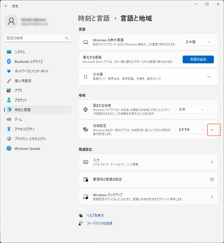 1-1-2.次に下の方にある「言語と地域」をクリック
