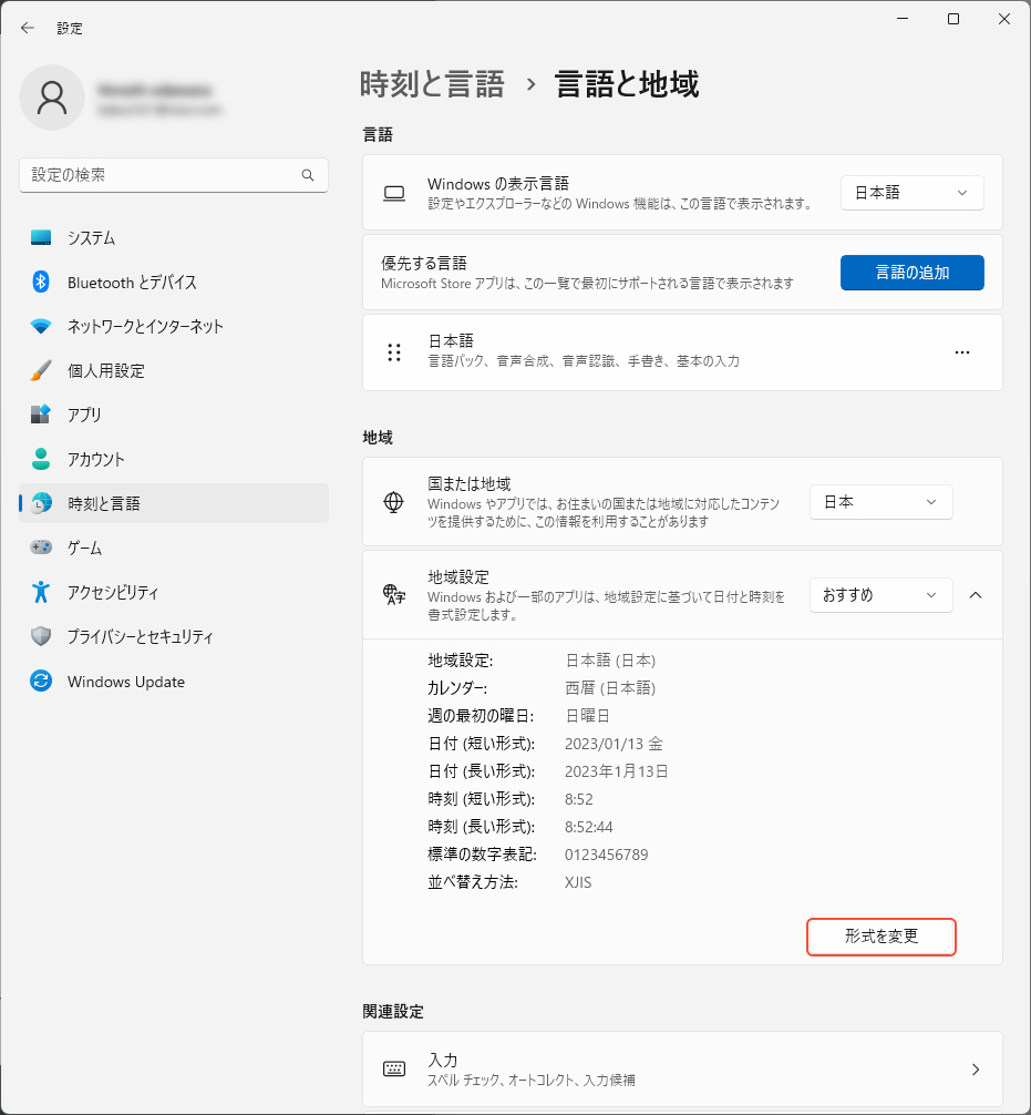 1-2-5.「地域」ダイアログが表示されるので「形式」タブ、「追加の設定」をクリック