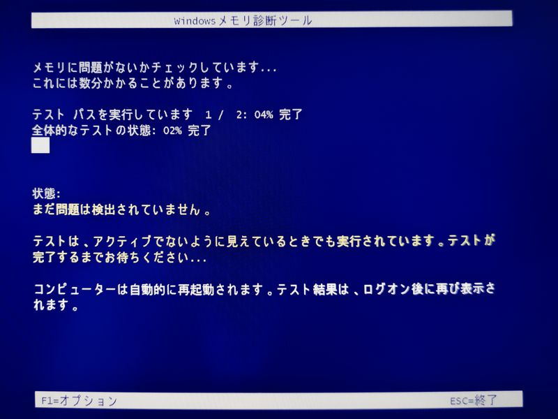 「Windowsメモリ診断」ダイアログが表示されるので、上側の「今すぐ再起動して・・・」をクリック