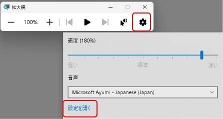 ・拡大鏡のツールバー右端の歯車アイコンをクリック