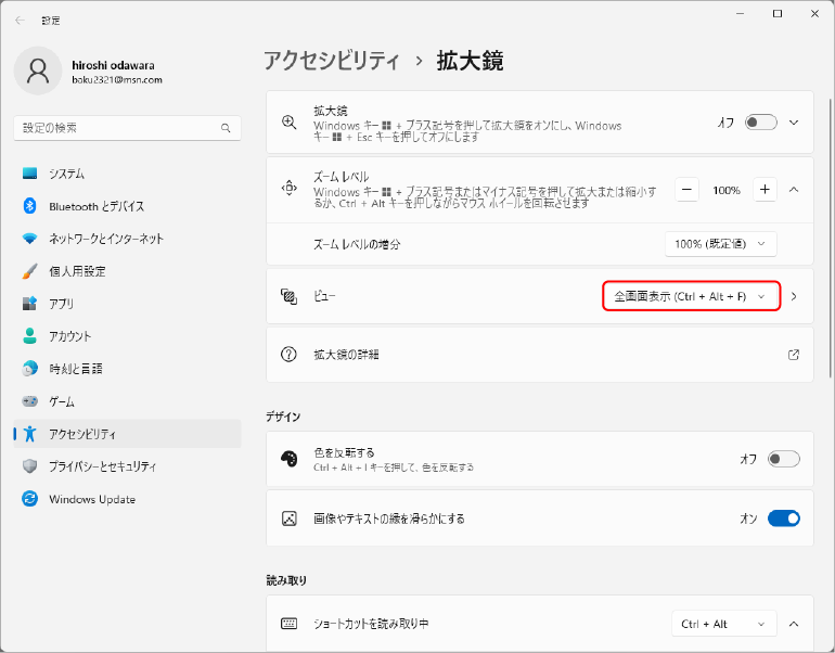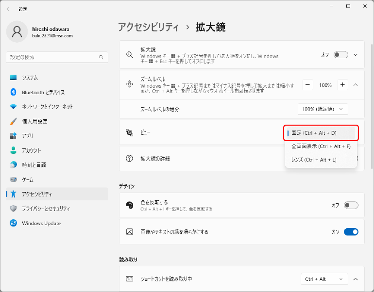 Windows 11 でマウスカーソルを含めてスクリーンショットを撮るには拡大鏡を使用する。